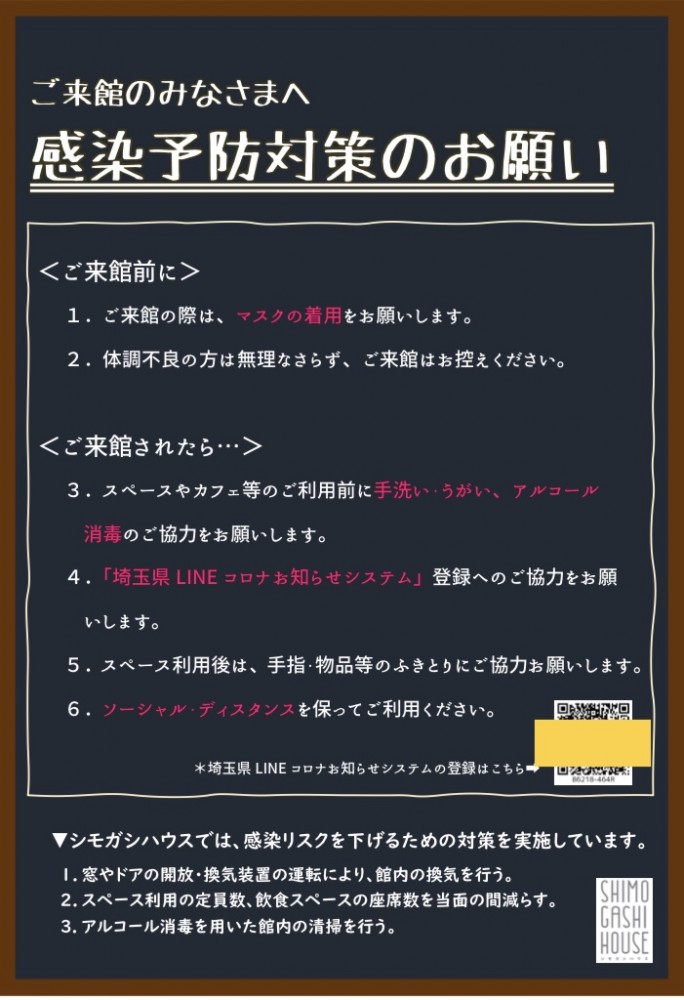 シモガシハウスでは、感染予防対策を実施しています