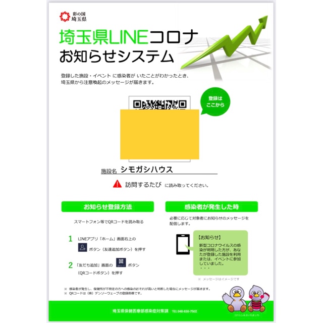 埼玉県LINEコロナお知らせシステムへの登録を推奨しています